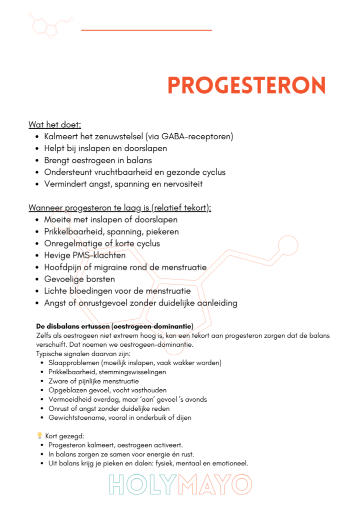 Een disbalans tussen progesteron en oestrogeen komt vaak voor, vooral in de premenopauze en menopauze, maar ook bij stress, slaapproblemen of langdurige overbelasting van het zenuwstelsel.